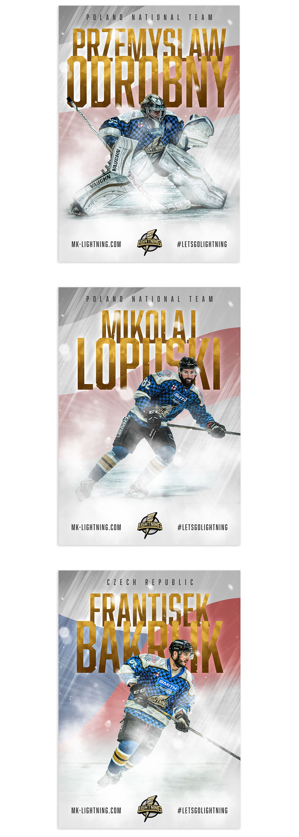 Posters designed to celebrate the MK Lightning's national team players.